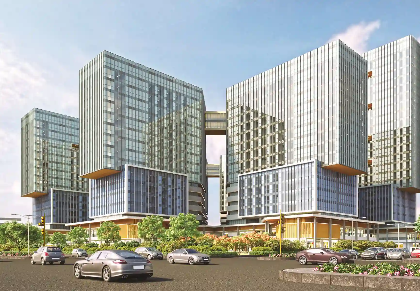 Built on a three-side open plot, Fairfox EON is set to become the city’s largest F&B hotspot, attracting consistent footfall. The development offers expansive parking capacity with approximately 3,000 car spaces, ensuring convenience for visitors and professionals alike. Double-height retail shops on the ground floor enhance brand presence and customer engagement. Additionally, the project is USGBC Gold Certification compliant, reflecting a strong commitment to sustainable and future-ready development.